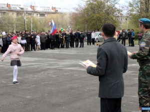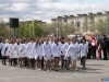 Ровно в полдень, перед началом традиционного городского конкурса-парада строевого шага и песни среди школ и средних специальных учебных заведений Миасса, в небо взлетели сотни воздушных шаров с бумажными журавликами в знак памяти о шести с лишним тысяч миасцев, погибших на полях сражений Великой Отечественной войны. Акция памяти прошла сегодня, 5 мая, во всех частях города. На площади перед городской администрацией под бодрые марши городского духового оркестра, невзирая на пронизывающий ветер и накрапывающий время от времени мелкий дождь, школьные команды продемонстрировали строевую выучку, а некоторые - и умение владения приёмами рукопашного боя. Восемнадцать команд, полтысячи школьников и студентов маршировали при полном параде, их умение держать строй и дружно петь оценивало жюри в составе представителей администрации города, комитета по делам молодёжи, управлений культуры и образования, совета ветеранов боевых действий и союза десантников. Первые места были присуждены командам школ № 20 и 29, два вторых места поделили 13 и 4 школы, а третье место у школы № 18. Среди студентов средних специальных учебных заведений лидерами стали "девушки в белых халатах" из медицинского колледжа, вторым признан колледж искусства и культуры, третьим - МАМТ.