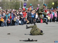 Многотысячной демонстрацией, праздничным митингом, возложением венков и цветов к вечному огню у мемориала Скорбящей матери начался день 9 Мая в Миассе. Парада и демонстрации проходят сегодня по всей России, вечером в небо взлетят салюты в честь 67 годовщины Великой Победы. Миасцы, как и все южноуральцы, внесли в победу свой вклад. Среди 83 южноуральцев, удостоенных высокого звания Героя Советского союза, 13 миасцев, полный кавалер Ордена Славы Николай Фёдорович Жаров был участником Парад Победы. Глава Миасского городского округа Игорь Войнов, открывая праздничный митинг, сказал: "Мне очень приятно в этот знаменательный день поздравить жителей и гостей города с очередной годовщиной Великой Победы. Вечная память тем, кто не вернулся с полей сражений, вечная слава тем, кто нашу Победу заслужил!". Возложения венков к Вечному огню и мемориалу павшим проходит всегда в особой, возвышенной атмосфере. Все, от мала до велика, склоняют головы перед подвигом павших. Праздничная программа была продолжена концертом творческих коллективов города. С шести часов вечера на центральной площади начнётся массовое праздничное гуляние, а в 22:00 - праздничный салют.