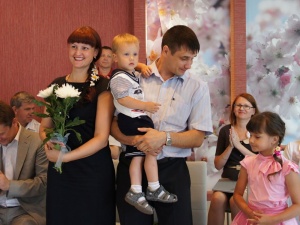 День любви, семьи и верности во второй раз отметили в стенах миасского отделения ЗАГСа в минувшее воскресенье. Праздник Святых Пётра и Февронии официально установлен в России пять лет назад, но ещё на Руси молодожёны чтили святых, верили в благополучие семьи и венчались в день их памяти. Супружеский союз Петра и Февронии считается образцом христианского брака, семейного счастья, любви. Под стать "брачному летнему времени" выбрали и главный символ праздника - ромашку, цветок, так пышно расцветающий в июльскую пору. Статистика подтверждает, что и в наше время молодые желают зарегистрироваться в столь прекрасный день. За три дня в брак вступили 57 влюблённых пар, пояснила Людмила Крутолапова, начальник миасского отделения ЗАГСа. Ведь к созданию семьи и дальнейшему благополучному проживанию стремится каждый человек. В ЗАГСе чествовали не только новоиспечённые пары, но и семьи, которые прожили вместе ни один чудесный год: 57, 50, 25 и 9 лет. Супруги Сурковы Владимир Сергеевич и Раиса Александровна, Поздняковы Борис Степанович и Лидия Александровна, Васьковы Геннадий Анатольевич и Ольга Николаевна, Соловьёвы Сергей Юрьевич и Марина Михайловна, Самойловы Александр Олегович и Ольга Сергеевна проведёнными вместе годами являют наглядное доказательство того, что самые главные жизненные ценности - семья и дети. В кругу детей, а некоторые - и внуков, супруги получили поздравления от сотрудников Дворца бракосочетаний, и вновь, как когда-то, расписались. Окончился праздник свадебным танцем в исполнении пар, плавно провальсировавших по залу. Совет Вам, да Любовь на долгие годы! Юлия Ситковская
