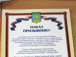 Сегодня, 1 октября 2012 года, стартовал очередной осенний призыв в ряды вооружённых сил РФ. Как сообщает официальный сайт Кремля, указ о призыве в октябре-декабре 2012 года подписал президент России Владимир Путин. По его распоряжению на службу в армию должны отправиться 140 тысяч 140 человек, что на 4,3 тысячи молодых людей больше, чем было призвано год назад - в ходе осеннего призыва 2011 года в войска было отправлено 135 тысяч 850 срочников. План по количеству призывников установлен свой для каждого субъекта Федерации, Челябинская область отправит служить почти пять тысяч человек. 20 южноуральцев пополнят элитное подразделение вооружённых сил - президентский полк, в их числе будет и призывник из Миасса, Сергей Вовченко. Как рассказал сегодня журналистам начальник отдела военного комиссариата по городу Миасс Сергей Васильев, на службу в президентском полку претендовало три миасских призывника, но две кандидатуры были отвергнуты. "Требования и отбор для службы в этом подразделении на порядок строже, чем в отряде космонавтов", - уточнил военком. Наряд на призыв на осень скорректирован с учётом того, что весной Миасс не успел отправить в войска около сорока выпускников ВУЗов и техникумов. В итоге в Миассе планируется призвать на действительную военную службу 210 человек. Напомним, что весной этого года при наряде 259 человек было призвано 264 человека, а отправлено в войска 221. Географически наши призывники будут служить практически во всех регионах страны, большая часть - около 70 человек - в Центральном военном округе, порядка десяти призывников будут миротворцами в Южном военном округе. Не меняется и "раскладка" по родам войск. По-прежнему уральских ребят ждут в сухопутных и космических войсках, подразделениях правительственной связи и на флоте. Основное отличие, по словам Сергея Васильева, это то, что практически половина из призыва затребована с высокими требованиями по режимности. Это значит, что отделу призыва военкомата необходимо произвести строгий отбор, исключить призывников, имеющих проблемы с законом или психические отклонения. Внимание уделяется и подготовке квалифицированных водителей. В этом году войскам требуется порядка 60 специалистов, в том числе один водитель с категорией "Е". Подготовку будущих воинов для транспортных подразделений проводит миасское отделение ДОСААФ, группы набираются регулярно, занятия на очередных курсах начнутся уже в этот четверг. Совместно со службой участковых отдела МВД по городу Миасс и представителями казачества военкоматом проводятся системные мероприятия по поиску так называемых "уклонистов". Кстати, привлечение к розыску казаков дало свои результаты. Кроме того, вразумляют уклонистов и административные штрафы. За неявку по повестке на медкомиссию и на призывной пункт на гражданина накладывается штраф от 100 до 500 рублей. Только за текущий год было оштрафовано почти 300 уклонистов. Кроме солдат-срочников ведётся набор и на службу по контракту. В военкомате обращают внимание на то, что число желающих служить в войсках растёт. Видимо, усилия по модернизации вооружённых сил дают свои плоды.