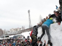 Сегодня, в Прощёное воскресенье на стадионе "Северный" состоялись Проводы зимы, организованные обществом традиционной русской культуры. Помочь проводить масленицу приехали коллективы и единомышленники из Челябинска, Екатеринбурга, Магнитогорска, Сатки, Сулеи. Всего на празднике хватало - и игр потешных, и боёв стеношных, и взятия снежной крепости. Гостям праздника скучать некогда было, скоморохи всякому занятие по душе, по силе, ловкости и по возрасту находили.