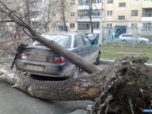 • 09.05.13 Дерево упало на автомобильСильным ветром во дворе дома по проспекту Макеева повалило два дерева, одно из них упало на припаркованную Ладу 2110