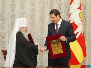 Подписание знакового документа между губернатором Челябинской области и Челябинской митрополией Русской православной церкви приурочено ко Дню славянской письменности и культуры. Первым шагом взаимного сотрудничества станет строительство кафедрального собора в Челябинске. Основные тезисы, принятые представителями власти и духовенства в ходе всероссийской научно-практической конференции "Государство. Церковь. Общество: партнерство во благо России", были отражены в соглашении, которое сегодня подписали губернатор Челябинской области Михаил Юревич и митрополит Челябинский и Златоустовский Феофан. Документ признан стать основой для совместной работы по укреплению безопасности и стабильности общества, развитию благотворительности и милосердия, совершенствованию государственной политики при взаимодействии с религиозными объединениями на территории Челябинской области. Михаил Юревич отметил, что в последние годы рост духовных потребностей православных южноуральцев очевиден. Увеличивается количество приходов: на территории области их насчитывается свыше двухсот пятидесяти. Только в сегодняшнем Крестном ходе в Челябинске приняли участие более 7 тысяч православных верующих. "Общины не только восстанавливают прежние храмы, но и строят новые. Особенно в последние два года, когда Челябинскую епархию возглавил Владыка Феофан. Повсеместно действуют воскресные приходские школы. Большой популярностью пользуются православные газеты, программы на телевидении и радио, в том числе на областных телеканалах. Сейчас это уже не дань моде, как иногда было в прежние годы. Люди ищут душевного покоя и находят его в церкви. Это движение к Богу, к своим духовным корням можно только приветствовать. Убеждён, что новое соглашение объединит усилия органов государственной власти и Челябинской митрополии в решении проблем нравственного оздоровления общества", - сказал глава региона. "Подписание соглашения - важное свидетельство взаимоотношения церкви и государства. Настало время не разбрасывать, а собирать камни. Динамика этих взаимоотношений видна, и я выражаю благодарность губернатору Михаилу Юревичу. Мне приятно видеть в нём динамичного, умного человека с широкими государственно-общественными подходами. Очень важно, что губернатора и его коллег волнуют не только экономическая составляющая, политическая ситуация, но и нравственно-духовное состояние общества. У нас много совместных задач. Подписание соглашения - это тот базис, на основе которого мы будем трудиться. Сироты, инвалиды, наркомания и алкоголизм - всё это является нашей общей задачей", - подчеркнул митрополит Челябинский и Златоустовский Феофан. Напомним, что завтра, 25 мая, в конференц-зале администрации Златоустовского городского округа состоится Русский Собор. Форум соберёт представителей духовенства Русской православной церкви, русских национально-культурных объединений, делегаций городских округов и муниципальных районов, на него приглашены гости из разных областей России. Перед Русским Собором стоит несколько задач: определение путей укрепления единства русского народа, русской православной веры, активизация деятельности русских национальных центров. В ходе докладов и дискуссий планируется обсудить вопросы сохранения традиционной культуры, роль наци