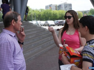 Вот уже в шестой раз Комитет по делам молодёжи предложил жителям центральной части Миасса обменять сигареты на конфеты. Сегодня, 31 мая, во Всемирный День отказа от курения, во всех странах проходят различные акции, призванные привлечь внимание людей к проблеме зависимости от никотина и последствий для здоровья человека. По данным Всемирной организации здравоохранения, в России от причин, связанных с курением, ежегодно преждевременно умирают около 300 тысяч человек. Напомним, что с 1 июня в России вступит силу новый антитабачный закон, который подразумевает собой запрет на курение в общественных местах. Но организаторы акции уверены, что вести борьбу с вредной привычкой на уровне государственном - этого мало. Нужно менять сознание, психологию людей. За время акции "Меняем сигарету на конфету" ребята из школьного парламента раздали одну тысячу чупачупсов в обмен на сигарету, а шоколад меняли на целую пачку сигарет. Правда, одну или две сигаретки из пачки прохожие предпочитали оставить себе, на всякий случай. Всё собранное табачное зелье тут же, на глазах у бывшего владельца крошилось и превращалось в мусор, чтобы не оставлять подозрений на счёт будущего этих сигарет.