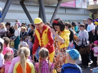 Сегодня, накануне Дня знаний, на площади перед ТРК "Слон" состоялся праздник для детей и их родителей. Развлечений, игр, танцев и подарков хватило на всех, чудесное настроение всем пришедшим на праздник обеспечили весёлые и заводные ведущие. Состоявшееся представление, по сути, дало старт праздничным мероприятиям в Миассе, посвящённым Дню знаний. Сегодня вечером праздничные мероприятия запланированы на посёлке Строителей, где для младших школьников запланирован спектакль, для всех - уличное представление, игры и конкурсы, а затем - дискотека. Завтра с утра в школах пройдут школьные линейки, затем празднование 1 сентября переместится на Предзаводскую площадь, где пройдёт день открытых дверей, на площади у Дворца культуры "Динамо" школьников встретят творческие коллективы ДК. Праздничные программы запланированы также во всех сельских поселениях округа.