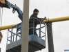 Прежде всего потребовалось разобрать и разрезать повреждённые металлоконструкции, затем установить и забетонировать вертикальные поддерживающие стойки. Сегодня была сварена, установлена на место и закреплена сама труба газопровода. На время проведения монтажных работ дорога на этом участке была перекрыта, транспорт инспекторы ГИБДД направляли в объезд.