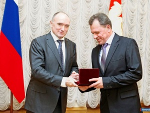 17 января в резиденции губернатора Челябинской области состоялась торжественная церемония вручения государственных и региональных наград, приуроченная к 80-летию Челябинской области. Знаки отличия из рук временно исполняющего обязанности губернатора Бориса Дубровского получили 20 человек, чьи заслуги и добросовестный труд на благо страны были по достоинству оценены на самом высоком уровне. Приветствуя собравшихся, Борис Дубровский отметил, что эта церемония, по сути, стала для него одним из первых официальных мероприятий на посту главы региона. "Понятно моё волнение, особенно когда смотришь на таких заслуженных людей. Поздравляю вас с 80-летием Челябинской области. Это очень хороший повод отметить наградами ваш добросовестный труд. Это признание вашего профессионализма, честной работы на благо Челябинской области и нашей страны",- сказал Б. Дубровский. Он особо отметил, что среди награждаемых - ведущие конструкторы Государственного ракетного центра имени академика В.П. Макеева. "Это предприятие - своеобразный рекордсмен региона по количеству работников, которым присвоены государственные награды: только за последние годы были награждены более тридцати "макеевцев". Это реальное подтверждение высокого промышленного и научного потенциала коллектива ГРЦ" - подчеркнул Борис Дубровский, обращаясь к участникам церемонии. За личные заслуги в разработке и создании специальной техники, способствующие укреплению обороноспособности страны указом президента России от 2 ноября 2013 года звание "Заслуженный конструктор Российской Федерации" присвоено четырём работникам ОАО "ГРЦ Макеева": первому заместителю генерального конструктора Михаилу Агафонову, заместителю генерального конструктора - начальнику отделения 7 Владимиру Шпарову, начальнику проектно-конструкторского отдела по разработке систем и гидроприводов Валерию Затыкину, заместителю начальника проектно-конструкторского отдела - начальнику сектора Владимиру Федоровичу Болотнову. Звание "Заслуженный конструктор Российской Федерации" присваивается высокопрофессиональным работникам конструкторских, технологических, научно-исследовательских, производственных и научно-производственных организаций за личные заслуги в разработке и внедрении принципиально новой высокоэффективной техники и технологий, отвечающих по своим технико-экономическим показателям высшему мировому уровню и обеспечивающих решение крупных социально-экономических задач. По завершении торжественной церемонии вручения наград первый заместитель генерального конструктора Михаил Агафонов так отозвался о состоявшемся событии: "Я считаю, что эти награды даны отчасти авансом, потому что нам предстоит серьёзная работа, порученная правительством, и наша задача - выполнить эту работу на самом высоком уровне и не подвести Челябинскую область. Государственный ракетный центр способен решить любые серьёзные задачи. Эта уверенность базируется на школе Государственного ракетного центра, и все успехи предприятия связаны именно с этой школой. Считаю, что любой специалист ГРЦ может получить такую награду, потому что он этого достоин". В преддверии вручения наград специалистам Государственного ракетного центра корреспонденты областного телевидения взяли короткое интервью у Владимира Болотнова и В