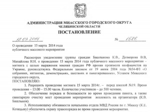 Сегодня на площадке перед гимназией № 19 на машгородке состоится митинг, его целью заявлено выражение мнения граждан против произвола неофашистов на Украине. Напомним, что неделей ранее митинг в поддержку русскоязычного населения Украины и Крыма состоялся на центральной площади города. Организатором митинга выступили депутат Константин Башлыков, общественник Владислав Дозморов и руководитель миасского казачьего ансамбля "Вольница" Николай Михайлов. Все организаторы имеют в своем роду украинские корни, и судьба братского народа им близка и не безразлична. Так же в мероприятии примет участие и сам ансамбль "Вольница", в чьем исполнении прозвучат украинские народные песни. Время проведения митинга - с 13 до 15 часов.
