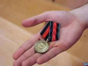 Красный диплом, грамоты за хорошие и отличные успехи в учёбе, благодарственные письма. К каким ещё наградам может стремиться школьник? Но есть в этом перечне особая награда, выбивающаяся из общего перечня. Такую не дадут за правильный ответ по математике или подготовленный реферат по биологии. Такие медали вручают. Речь о медали "За службу Родине с детства", которая вручена ученику одиннадцатого класса гимназии № 26 Павлу Елисееву. Уточним, что Павел принимал участие в работе поискового отряда "Уралец". Отряда, который не первый год занимается поиском останков солдат, погибших во время Великой Отечественной войны, дальнейшем установлением их личностей, связью с родными, захоронением останков, но в родной земле. Как поясняет сам Павел, поездку в Брест определила цепь случайностей. "Знакомство с руководителем поискового отряда "Уралец" Чигириным Борисом Юрьевичем произошло во время пребывания в детском центре "Океан". Он то и предложил возглавить поисковую группу для работы в Бресте, - отмечает школьник. - В Белоруссии работы должны были вестись на территории Брестской крепости, но поскольку там до сих пор много неразминированных мест, было решено перенести работы на территорию воинской части, где в военные годы располагался немецкий концлагерь". Интересна и сама история начала раскопок в этой воинской части. По свидетельствам, командир части, ссылаясь на попавшие к нему бумаги, несколько лет пытался доказать, что ранее в этом месте располагался концлагерь. Но решение затягивалось. Лишь при проведении ремонтных работ, когда экскаватор наткнулся на многочисленные останки тел, стало очевидно, что командир был прав. За время летних работ участниками отряда "Уралец" было поднято сто тридцать тел. Но далеко не у всех смогли установить личность. Лишь на теле одного солдата нашли жетончик и по нему узнали имя и нашли его родных. В остальных случаях - ведётся более долгая работа: подъём документов, поиск сведений. За проведённую работу и несение Вахты памяти участников отрядов наградили нагрудным крестом "200 лет Георгиевскому кресту" в Бресте, а немного позже в Озёрном - медалью "За службу Родине с детства". Юлия Ситковская