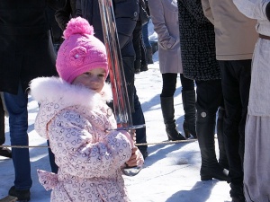 Когда основная часть программы выступлений подошла к концу, на арену вышли зрители, в их числе были и самые маленькие. Ребята объединились к команды и сразились на игрушечных мечах, а все желающие смогли сфотографироваться на память в костюме воина и подержать в руках боевые мечи и щиты.
