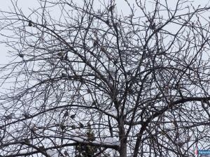 Сегодня в одном из дворов многоквартирного дома в машгородке можно было наблюдать весьма любопытное пиршество - городские птицы вместе с лесными сородичами мирно клевали остатки ранеток и крылаток клёна. Лесные гости были нескольких видов - с яркими розоватыми брюшками походили на вьюрков, тоненькие ярко-лимонные - на овсянок. Самая крупная представительница лесной братии очень напоминала дрозда-рябинника, причём была в единственном экземпляре, в отличие от стаек других представителей диких пернатых. Рядом были и воробьи, и синицы. На пир, который устроила добродушная женщина, бросая из окна семечки и зёрна, слетелись и голуби, и лесные птицы. Причём хозяева двора - голуби, подтвердили своё второе имя "птица мира". Они даже не делали попыток прогнать лесных гостей из своей "столовой". Все пернатые перекусывали мирно, бок о бок. Очень вероятно, что диких птиц непогода и голод заставили изменить привычкам и заглянуть к своим городским сородичам.