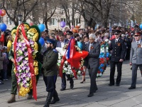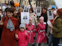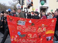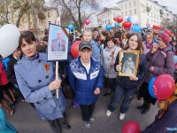 Сегодня Миасс вместе со всей страной праздновал замечательную дату, оставившую неизгладимый след в истории нашей страны - День Победы. С раннего утра у инженерного корпуса автомобильного завода "Урал" собирались сотрудники всех производств этого предприятия, выстраиваясь в колонны и прикрепляя к одежде георгиевские ленточки. Собирались целыми семьями, с детьми, даже совсем маленькими, в колясках. На всю Предзаводскую площадь звучали всем знакомые мелодии военных лет, создавая торжественную, неповторимую атмосферу праздника. Выступая перед автомобилестроителями, генеральный директор автомобильного завода "Урал" Виктор Кадылкин отметил роль победы в истории не только России, но и мира - подвиг наших отцов и дедов обеспечил всем будущим поколениям чистое, мирное небо над головой. Молодые сотрудники предприятия по традиции возложили цветы к памятнику легендарного "Захара", а затем у ДК автомобилестроителей заводская колонна присоединилась к общегородскому торжественному шествию. Напомним, что сегодня шествия и митинги проходят в центральной и северной частях города, возложение цветов и "Минута памяти" проходят у монументов памяти героев. В этом году в общем строе идут и те, кого уже нет с нами: так называемый "бессмертный полк" был впервые организован в Миассе. Школьники, детсадовцы, педагоги, родители и просто желающие соорудили штендеры с именами и фотографиями ушедших героев, тем самым записав своих предков в полк. Чтобы помнили. Чтобы почтить память всех погибших поимённо. А на площади у администрации демонстрантов уже ждала праздничная программа, подготовленная ДК "Бригантина", и первым ведущие пригласили на сцену главу округа Игоря Войнова, в первую очередь отметившего вклад города Миасса в победу над фашистской Германией - в Миассе восемь героев Советского Союза, один полный кавалер Ордена Славы. 14 тысяч жителей нашего города ушли в своё время на войну, и почти половина из них не вернулись, отдав жизнь за право будущих поколений жить в свободной стране: "Мы должны помнить всех! Я поздравляю вас с праздником, и в первую очередь желаю нашей стране мира. Вечная слава воинам-победителям!". Поздравили всех с великим праздником и председатель городского Совета Ветеранов Валентин Филь и военный комиссар Сергей Васильев. Конечно, главными пожеланиями в этот день были пожелания именно мира - чистого неба, яркого солнца, и чтобы тень войны не падала на жизнь нынешних и будущих детей, но чтобы они всегда помнили подвиг дедов, прадедов и прапрадедов, и осознавали, что победа досталась русскому народу очень дорогой кровавой ценой. И тем, кто воевал на полях сражений, и тем, кто, не жалея себя, трудился в тылу. Реют на площади красные флаги, на специально установленных стендах отражены самые значимые этапы Великой Отечественной Войны, минута молчания, и уже солдаты военной части 34/98 и кадеты школы № 11 возлагают гирлянду Славы к памятнику Скорбящей матери, а после стройными колоннами к вечному огню идут представители администрации и городских предприятий. Завершился митинг праздничным концертом для жителей города, праздничные гуляния продолжатся сегодня вечером. С семи часов вечера на центральной площади и бульваре Мира будут проходить концертные программы, а в 22:00 в центральной части города будет дан фейерверк.