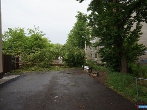 В минувшее воскресенье после обеда на улице Олимпийской рухнул огромный тополь, оборвав при этом электрические провода и повредив ограждение недавно построенного магазина и детского сада. По счастью, людей и машин рядом не было, и хорошо, что дерево не рухнуло на стоящие рядом жилые дома, их жители иначе могли бы недосчитаться балконов и окон. Напомним, что упавшая в прошлом году в соседнем дворе берёза придавила припаркованный рядом автомобиль.