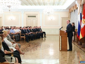 Сегодня, 7 августа, в резиденции губернатора состоялся торжественный приём, приуроченный ко Дню физкультурника. Грамоты, благодарственные письма и нагрудные знаки получили директора спортшкол, учителя физкультуры, тренеры - все кто имеет отношение к этому празднику. В церемонии принял участие исполняющий обязанности губернатора Челябинской области Борис Дубровский. "Вы представляете элиту южноуральского спорта, достигли значительных высот, воспитали несколько поколений чемпионов, благодаря вам спортсмены Южного Урала ежегодно завоевывают более тысячи медалей различного достоинства. 650 наших спортсменов являются кандидатами в сборную России и успешно выступают на международных соревнованиях. Эти цифры подтверждают высокий статус Челябинской области как одного из ведущих спортивных регионов страны", - обратился к присутствующим Борис Дубровский. Глава региона отметил, что спорт помогает ему в работе и в жизни: "Для меня лично, для моих друзей и коллег, с кем мне довелось учиться, работать, служить в армии, спорт всегда был неотъемлемой частью жизни. Сейчас не проходит и дня, чтоб я не тренировался. Считаю очень важным поддерживать спортивную форму - это помогает, что называется, держать удар. Я активно агитирую своих коллег, в том числе и личным примером. Считаю, что спортивный характер, навыки и участие в соревнованиях, в целом спортивная жизнь позволяет концентрировать свои силы на достижение поставленных целей. Именно поэтому у нас в Стратегии развития региона до 2020 поставлена задача охватить спортивными занятиями до 80% школьников и студентов. Нам очень важен спорт высших достижений, но еще более важен детский и массовый спорт, пропаганда здорового образа жизни. В решении этих задач нам поможет инициатива Владимира Владимировича Путина по возобновлению комплекса ГТО. Благодаря вашим навыкам и знаниям, компетенциям достаточно быстро реализуем эту задачу. Это, безусловно, будет способствовать вовлечению людей в занятия массовым спортом и поднимет статус Челябинской области как спортивного региона на большую высоту". Более 60 человек получили сегодня заслуженные награды - удостоверения "Заслуженный тренер России", знаки "Отличника физической культуры", почётные грамоты министерства спорта Российской Федерации, почётные грамоты и благодарности губернатора Челябинской области, почётные грамоты министерства физической культуры, спорта и туризма Челябинской области. Заслуженные награды вручили председатель правительства Сергей Комяков, его заместитель Вадим Евдокимов, заместитель губернатора Евгений Редин, министр спорта Леонид Одер. Среди отмеченных высокими наградами немало представителей Миасса. За большой вклад в развитие физической культуры и спорта нагрудные знаки "Отличник физической культуры и спорта" были вручены Кочариной Елене Валентиновне, тренеру-преподавателю по легкой атлетике специализированной спортивной школы олимпийского резерва и Хайрутдинову Валерию Михайловичу, учителю физической культуры средней школы № 16. За заслуги в сфере физической культуры, спорта и плодотворный добросовестный труд почётными грамотами министерства спорта Российской Федерации награждён ряд представителей спортивной общественности города Миасса: Дымова Наталья Вячеславовна, инструктор-методист общест