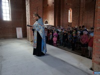 Настоятель храма отец Виталий поздравил детей, которым уже завтра предстоит сесть за школьные парты, с новым учебным годом, пожелал им усердно трудиться, приобретая знания, не забывая при этом своих родителей и Господа.