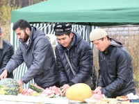 Ид аль-Адха (Курбан-байрам) - один из важнейших праздников мусульман всего мира, знаменует окончание паломничества в Мекку и олицетворяет истинные мусульманские нравственные идеалы. Верующие-мусульмане в эту субботу и два последующих дня будут отмечать праздник, который в этом году приходится на 4-6 октября. В благословенные праздничные дни все забывают старые обиды, ходят в гости к своим родным и близким, преподносят друг другу подарки. Происхождение Курбан-байрама связано с историей о жертвоприношении пророка Ибрахима (Авраама), описанной в священных текстах всех трех монотеистических религий - ислама, христианства и иудаизма. Господь, испытывая своего пророка, повелел ему принести в жертву сына, после чего, видя его твёрдость в вере, приказал принести в жертву барашка и отпустить сына. Согласно мусульманской религии, праздник жертвоприношения символизирует преданность вере и богобоязненность. Торжества сегодня проходят и во всех российских городах. Праздновать день жертвоприношения, даже если это не происходит в Мекке, начинают с раннего утра. Чуть свет мусульмане идут в мечеть к утренней молитве (намазу), но прежде необходимо совершить полное омовение, надеть новую и опрятную одежду, по возможности умастить себя благовониями. Перед молитвой не рекомендуется есть. После праздничного намаза имам произносит праздничную проповедь. По обычаю, в день Курбан-байрам режут жертвенное животное - курбан, его мясо раздают нуждающимся. По традиции барана делят на три части, треть отдаётся мечети - Аллаху, вторая треть предназначается для бездомных и малоимущих, ещё одна треть идёт на праздничный обед в семье. Употребление алкоголя в этот день является кощунством, глумлением над принципами Ислама. В Миассе верующие собрались сегодня в строящейся мечети в посёлке Селянкино, в общей сложности собралось около 100 человек. Молодые люди - это в основном приезжие из Средней Азии, старшее поколение - местные. После праздничной молитвы и проповеди во дворе мечети были накрыты столы с угощением, прежде всего это блюда из баранины - суп шурпа, были на столе и пироги, и фрукты, кипяток для горячего ароматного чая ждал всех в пузатых самоварах.