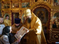 Вчера, 21 декабря 2014 года, старейший в Миассе храм торжественно отмечал свой 125-летний юбилей. Праздничное богослужение совершил правящий архиерей епархии Высокопреосвященнейший Никодим, митрополит Челябинский и Златоустовский. Сотни прихожан храма молились вместе с Владыкой на Божественной литургии, в завершение которой митрополит Никодим поздравил их и настоятеля храма, благочинного Миасского округа протоиерея Георгия Крецу с праздником. По случаю юбилея Владыка вручил архиерейские грамоты нескольким заслуженным работникам храма. Почётную грамоту от городских органов власти получил и протоиерей Георгий Крецу - её вручил ему глава Миасского городского округа Игорь Войнов. Светлое торжество Свято-Троицкого храма, этого "духовного сердца Миасса", стало ещё одной заметной вехой на историческом пути города.