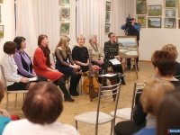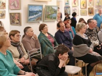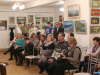 Вчера, 12 февраля, в Доме народного творчества состоялось открытие выставки работ учеников студии живописи "Настроение" под руководством златоустовского художника Надежды Русиновой. Выставка называется "Разноцветный мир" неслучайно, со стен зала на любителей искусства льется яркий поток красок! Особенность студии живописи Надежды Русиновой в том, что эта удивительная женщина объединила молодых начинающих художников двух городов: Златоуста и Миасса. Педагог проводит свои занятия в двух городах, к ней приходят обучаться как подростки, так и пенсионеры, все, чья душа требует самовыражения на холсте. Ученики Надежды Русиновой быстро "встают на крыло": сначала осваивают азы изобразительного искусства, затем работают в разных жанрах, ездят на пленеры. А самые смелые и уверенные в себе спустя некоторое время устраивают свои персональные выставки. Многие из её учеников пишут уже самостоятельно, не приходя в студию. Представленная экспозиция является отчётной для студии, в ней приняли участие 30 художников-любителей: одиннадцать из Миасса и девятнадцать из Златоуста. На выставке представлено 103 картины, это натюрморты, пейзажи, сюжетные композиции. Надежда Русинова как педагог пользуется большим авторитетом. Ей интересен процесс обучения и его результаты, она умеет передавать свой опыт и знания, а это дар, который дан далеко не каждому. Поприветствовать открытие выставки живописи, поддержать Надежду и ее студийцев приехал Владимир Иосифович Зозуля - председатель союза художников России Златоустовского отделения. На открытии встретились звучали стихи, песни, воспоминания студийцев.