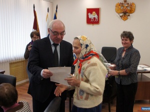 Сегодня, 7 апреля, глава Миасского городского округа Игорь Войнов торжественно вручил ветеранам войны, нуждающимся в улучшении жилищных условий, уведомления о выделении субсидий на приобретение жилых помещений в собственность. Произошло это в соответствии с указом президента Российской Федерации "Об обеспечении жильём ветеранов Великой Отечественной Войны 1941-1945 годов", сама встреча главы с защитниками Родины получилась очень торжественной и вместе с тем -дружеской. Жилищные сертификаты на сумму более чем миллион рублей, а также цветы и памятные медали в честь 70-летия Победы, из рук главы получили вдова участника войны Антонина Колпащикова, участник войны Василий Захаров, а Любови Степановой также была вручена медаль в честь 70-летия полного освобождения Ленинграда от фашистской блокады. Конечно же, под аплодисменты, вспышки фотокамер журналистов и с последующим дружеским чаепитием с вкусным угощением. Такие же уведомления о выделении субсидии на жильё из федерального бюджета получат и те ветераны, что не смогли сегодня лично явиться в администрацию - это Фёдор Пиксайкин и Мамдуда Гарифуллина. Кроме того, на проверку с целью оформления субсидии направлено учётное дело участницы войны Нины Лещинской. Помимо них на сегодня в администрации города на учёте в качестве нуждающихся в жилье продолжают состоять 6 ветеранов. Юлия Кушпиль
