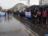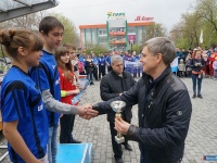 Сегодня, 16 мая, состоялась 78-ая лёгкоатлетическая эстафета на приз газеты "Миасский рабочий", посвящённая семидесятой годовщине Победы в Великой Отечественной войне. Напомним нашим читателям, что перенос эстафеты, которая традиционно проводится в день Победы, был вызван плохими погодными условиями. И хотя сегодня тоже не обошлось без кратковременных дождей, но проведению мероприятия это не помешало. Как рассказал главный судья соревнований Сергей Полев, для участия в забеге зарегистрировалось тридцать семь команд, это немного меньше, чем в прошлый год (тогда их насчитывалось сорок две). Снижение численности вполне можно объяснить погодными условиями и переносом соревнований. Кстати, сам Сергей Александрович судит соревнования уже в тридцать шестой раз, и на его памяти тоже есть и грозы, и дожди, а однажды награждение легкоатлетов пришлось проводить в фойе администрации города. На построение команд прибыли не только официальные лица: заместитель главы администрации Геннадий Васьков, руководитель управления физкультуры и спорта Владимир Васильев, главный редактор газеты "Миасский рабочий" Юлия Мызникова, но и ветераны войны и труженики тыла, они также поприветствовали участников соревнований и пожелали удачных стартов. Эстафета не обошлась без мелких ушибов и падений, но серьёзных травм получено не было, все команды пересекли финишную черту. Лидеры эстафеты практически не изменились относительно прошлых лет, среди общеобразовательных школ пальму первенства вновь завоевала команда школы № 20, за ней следом финишировали бегуны из гимназии № 26, на третью ступень пьедестала почёта поднялась команда школы № 16. Среди школ-восьмилеток победу одержали легкоатлеты школы № 15, "серебро" соревнований взяли ученики школы № 28, "бронзу" - спортсмены школы № 14. В категории колледжей и вузов первое место заняла команда ЮУрГУ, второй стала команда геологоразведочного колледжа, третьей - сборная машиностроительного колледжа. Среди команд предприятий города пятый год подряд лидерство держит сборная АЗ "Урал", второй пришла к финишу команда ГРЦ имени Макеева, третьей стала команда "Скикросс". Юлия Ситковская