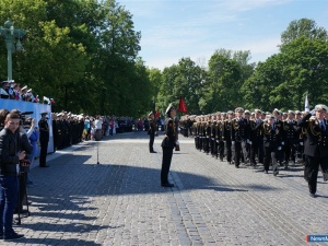 20 июня на Якорной площади в центре Кронштадта состоялась торжественная церемония выпуска курсантов и слушателей Военного учебно-научного центра ВМФ, включающего в себя Военно-морскую академию имени Н.Г. Кузнецова, высшие специальные офицерские классы, высшие военно-морские училища Санкт-Петербурга, а также Нахимовское ВМУ и Кронштадтский морской кадетский корпус. 450 выпускников получили дипломы об окончании обучения в высших и средних специальных учебных заведениях ВМФ, завершении подготовки по программам высшего, среднего и дополнительного профессионального образования. Состоялось производство в офицеры, молодым лейтенантам было вручено личное холодное оружие - морские кортики. Церемонию выпуска возглавил Главнокомандующий Военно-морским флотом России адмирал В.В. Чирков, также в ней приняли участие командующий Северным флотом адмирал В.И. Королёв, командующий Балтийским флотом вице-адмирал В.П. Кравчук, представители предприятий оборонно-промышленного комплекса, в том числе делегация АО "ГРЦ Макеева" во главе с генеральным директором, генеральным конструктором В.Г. Дегтярём, представители администрации Санкт-Петербурга и духовенства. Главнокомандующий вручил отличникам учёбы девять "золотых" медалей и 19 "красных" дипломов. По доброй традиции, особо отличившиеся выпускники, а также их преподаватели были отмечены предприятиями ОПК. С 1996 года, в соответствии с решением научно-технической конференции "Макеевские чтения" и приказом Главнокомандующего ВМФ, с целью увековечивания памяти первого генерального конструктора АО "ГРЦ Макеева", для лучших курсантов и слушателей Военно-морской академии имени Н.Г. Кузнецова учреждена ежегодная стипендия имени В.П. Макеева. В этом году решением Научно-технического совета ГРЦ Макеева именные стипендии присуждены капитану 2 ранга Дмитрию Комарову и капитану 2 ранга Адриану Роговому. Дипломы и денежное содержание стипендиатам вручил В.Г. Дегтярь. Торжественная часть выпуска продолжилась проносом по брусчатке Якорной площади Государственного флага России и знамени Академии, проходом более тысячи выпускников, курсантов, слушателей и преподавателей. Затем настоятель храма архимандрит Алексий провёл общий молебен в Кронштадтском Морском соборе во имя святителя Николая Чудотворца. Возведённый в 1903-1913 годах Морской Никольский собор задумывался как памятник всем морякам, погибшим за Отечество в бою и от ран, и по праву считался духовным центром всего Российского флота. На памятных досках были высечены имена 12 тысяч погибших за Отечество моряков, за которых в соборе ежедневно возносилась молитва. Здесь бережно сохранялись реликвии, связанные с морской славой державы. В 2012 году, после реставрации, в соборе вновь начались регулярные богослужения, а сегодня здесь возрождается ещё одна традиция - освящать личное оружие молодых офицеров. Она символизирует то, что отныне они отвечают за подчинённых не только перед страной и людьми, но и перед Богом. Действительно, требования к выпускникам предъявляются высокие. Как отметил в своей речи Главком ВМФ В.В. Чирков: "Строительство флота набирает динамику. Выпускникам предстоит служить на современных надводных кораблях модульной конструкции с высокоточным оружием на борту, стратегических подводных лодках, поступающих на вооружение и 