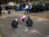 Популярностью пользовалась небольшая аллея, представляющая собой фотографии работников различных нужных предприятию профессий за работой - кузнец, слесарь механосборочных работ. И трафарет вместо лица - можно запечатлеть себя "за работой" - ребятишкам было интересно, да и взрослые с удовольствием "меняли работу". На сцене в это время сменяли друг друга коллективы Дворца, исполняя весёлые песни и зажигательные танцы.