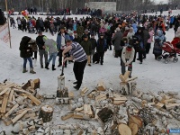 В минувшее воскресенье стадион "Северный" едва вместил всех желающих принять участие в масштабном праздновании проводов русской зимы. В этом году организаторам пришлось приложить немало усилий для расчистки территории от снега, но зато в результате здесь удалось построить настоящую снежную цитадель, а места на нескольких площадках нашлось и для обжорного ряда, и для ярмарки мастеров, и для огромного числа площадок для народных забав, молодецкой удали и шуточных игрищ. Занятие по душе, силе и кошельку мог найти любой, от мала до велика.