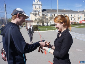 Комитет по делам молодёжи провёл традиционную предпраздничную акцию по бесплатной раздаче геогиевких ленточек