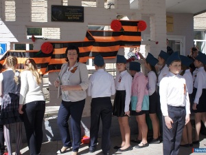 Сегодня, 5 мая, в рамках празднования наступающего Дня победы в школе № 4 состоялся торжественный митинг, посвящённый памяти её первого директора, участника Великой Отечественной Войны Сергея Шатрова - мемориальная доска с его именем была торжественно открыта в прошлом году. На площадке перед школой для проведения торжественного мероприятия выстроились классы с первого по пятый, ведущая Инна Муратова начала с главного - огромного значения девятого майского дня 1945 года для истории нашей страны. Отсюда и дань памяти павшим, и вечная благодарность ныне живущим ветеранам, и трогательные стихи, прочтённые старшеклассниками. Конечно же, детям снова напомнили важнейшие факты биографии Сергея Шатрова - военные годы, награды, деятельность на благо школы, а бывший педагог школы Лидия Хорошилова, знавшая первого директора лично, поделилась своими воспоминаниями. Пятиклассники показали свои таланты, пройдясь маршем со строевой военной песней - эти дети стали победителями школьного конкурса. В своей приветственной речи директор школы Оксана Мигунова отметила, что теперь каждый год в тёплые майские дни школьники будут собираться здесь, у мемориальной доски, чтя память тех, кто отдал жизнь ради победы на фронте, трудился в тылу, примером своей жизни показывая лучшие человеческие качества. Минута молчания, возложение гвоздик к памятной доске, и ещё один красивый момент - школа присоединилась к акции "Голубь мира" - в голубое небо взмыли привязанные к белым и оранжевым шарам сделанные детскими руками бумажные птицы. Юлия Кушпиль