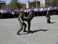 В преддверии дня великой Победы на центральной площади Миасса состоялся ежегодный конкурс "Смотр песни и строя". Участие в мероприятии приняли 23 команды общей численностью 700 человек. На площади собрались и совсем юные армейцы - школьники с 1 по 4 класс, и ребята постарше - выпускники школ и учащиеся среднеспециальных учебных заведений. С приветственным словом выступил глава МГО Геннадий Васьков: "Мероприятие важно тем, что его участниками являются молодые армейцы, это вы являетесь носителями исторической памяти о той тяжёлой войне, которую пришлось пережить нашим дедам и прадедам. Смотр песни и строя будет способствовать более глубокому проникновению в те события и их пониманию". Минутой молчания и запуском журавликов в небо - символа гордости и несломленности народа почтили память погибших на фронтах Великой Отечественной войны. Открыл конкурс плац-парад под звуки всем знакомой мелодии марша "Прощание славянки". Далее последовали выступления: команды продемонстрировали отточенность строевого шага, опрятность внешнего вида и жёсткую дисциплину. Готовились к конкурсу долго и основательно: после уроков в спортзалах своих школ вместе с учителями физической культуры и ОБЖ отрабатывали синхронность поворотов, умение держать интервал в строю. Жюри в составе отставных военных, ветеранов боевых действий, а также представителей управлений культуры и образования вынесло решение: в старшей группе первое место присуждено медколледжу, в группе 9-11 классов первое место у школы № 44, второе и третье места заняли школы № 4 и № 13 соответственно. В самых многочисленных группах, 5-8 классы и младшие школьники, сразу несколько команд набрали равное количество баллов, поэтому награды за первое место получили школа № 13 и гимназия № 26 (среди 5-8 классов), школа № 18, гимназия № 19 и школа № 29 (среди младших классов). В призёрах были команды школ № 17 и № 20, патриотического клуба "Миротворец" (среди 5-8 классов), лицея № 6, школ № 16 и № 15 (среди младших классов).