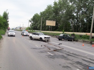 Сегодня, 15 июня, около семи часов утра на улице 8 Июля 33-летний водитель автомобиля "Ауди-80" при выезде с прилегающей территории не уступил дорогу и допустил столкновение с двигающемся по главной дороге автомобилем "ВАЗ-21053". После столкновения "ВАЗ" врезался в бетонные блоки ограждения проезжей части. В результате ДТП водитель автомобиля "Ауди" получил незначительные травмы, ему назначено амбулаторное лечение, 42-летний водитель автомобиля "ВАЗ" был госпитализирован с травмами различной степени тяжести.
