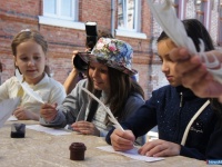1 сентября - День знаний, и, как правило, его больше связывают со школьными линейками, классными часами и настроем на будущий учебный год. В этот день городской краеведческий музей предложил школьникам приобрести дополнительные знания и умения и освоить некоторые русские ремёсла, посетив "Город мастеров". Во дворе музея расположились несколько столов, за каждым - особый мастер-класс: урок чистописания гусиными перьями, плетение из рогоза, работа с берестой, кашпо из природного материала. "Последнее время музеи переходят на новые формы работы - так называемые, интерактивные. Это интереснее для посетителя, поскольку он принимает непосредственное участие в каком-то процессе, как часто бывает, уже забытым в наше время. Как, например, сегодня: изготовление поделок из рогозы, бересты. Это ремёсла, характерные для XIX века, сейчас они забыты, но музейные сотрудники пытаются их возродить, вернуться к истокам нашей русской культуры, - рассказала о мероприятии директор музея Алла Овчинникова. - Сегодня акцент сделан на письме перьями, поскольку на календаре 1 сентября, и дети пошли в школы. В современном мире дети и взрослые привыкли к компьютерам и планшетам, разучились писать ручкой, в результате - почерк испорчен. Сотрудники музея пытаются показать, как трудно было писать перьевой ручкой, и как старались ребята на уроках чистописания". Кстати, считалось, что лучшие перья берут с левого крыла птицы - они удобнее лежат в руке. Большой интерес вызвал и мастер-класс по изготовлению шаркунков. Шаркунок представляет маленькую коробочку из бересты, игрушку для ребёнка, которую делали на Руси. "Приготовить шаркунок можно за пятнадцать минут: он собирается из влажной бересты. Вначале бересту бросают в кипящую воду и ждут, пока береста закрутится. Затем складывают в виде коробочки, внутрь насыпают горошек. Получается своеобразная погремушка. Зачастую на коробочке рисовали солнышко,так ребёнок был защищён светом", - рассказала научный сотрудник музея Елена Шевелева. Добавим,что подобные мероприятия пользуются большой популярностью у школьников: поучаствовать в мастер-классах пришли не только дети близлежащих школ, школ центральной части города, но и приехали организованными группами из сельской местности.