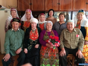 С поздравлениями семью Рафэля и Зайтуны с изумрудной свадьбой навестили исполком Курултая башкир города Миасса и клуб "Ак инэйзэр". Несмотря на свой почтенный возраст, а хозяйка этой осенью отметит 80-летний юбилей, гостей она встретила ароматными пышными пирогами. Председатель исполкома Булякай Шафикова зачитала торжественные слова и от всей души поздравила счастливую семью, а также вручила подарки от спонсоров. Бабушки в традиционных белых платках спели народные башкирские песни, прочитали стихи собственного сочинения и даже сплясали. Их энергии и задору позавидовала бы иная молодёжь - со своей программой "Давайте жить дружно" бабушки выступают в детских садах и школах как Миасского городского округа, так и за его пределами. Как рассказывают супруги Мухитдиновы, их свадьба состоялась 24 марта в деревне Мавлютова Аргаяшского района. Рафаэль только-только вернулся из армии, когда родственники представили ему Зайтуну. После двух встреч молодые люди стали законными супругами. За три года семья успела обзавестись двумя замечательными сыновьями, а отец семейства - выучиться на тракториста. С этими приобретениями семья перебралась на родину Зайтуны - в посёлок Северные печи. Устроились на работу, построили дом, родили дочку. Много лет прошло с тех пор, старший сын Рауль и дочь теперь и сами воспитывает по двое детей. Все эти 40 лет Зайтуна дружно прожила со свекровью, а кроме четверых внуков обзавелась и правнучкой. С хозяйством супруги справляются сами: заботятся о доме, сажают картошку, огурцы и помидоры, по весне покупают гусят, утят, цыплят. Самые искренние и сердечные поздравления прозвучали в адрес семьи Мухитдиновых, где бережно сохраняются духовно-нравственные ценности и национальная культура, воспитываются толерантность, любовь к детям и почтение к родителям. Полные ладони счастья, вечной весны на душе, огромного здоровья и неугасающего тепла в домашнем очаге пожелала семье Рафаэля ага и Зайтуну апа от лица всего Курултая башкир председатель исполкома Булякай Шафикова.