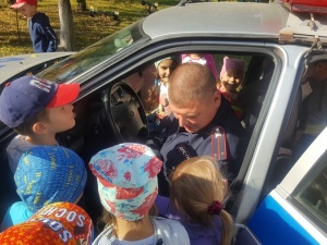 Вспомнили ребятишки и правила поведения на остановках. Дарья Лунёва, в свою очередь, пояснила, как правильно ездить на велосипеде. Затем инспекторы Евгений Лунёв и Сергей Пудов рассказали о своей службе в отделе ГИБДД и показали атрибуты, которыми пользуются стражи порядка. В завершение мероприятия детям представили патрульный автомобиль.