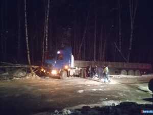 ДТП произошло около четырёх часов дня возле шашлычной "На заимке". Водитель "КамАЗа" - 30-летний мужчина - не справился с управлением, выехал на встречную полосу и врезался в "МАЗ". Один из большегрузов съехал в кювет и "подмял" несколько деревьев, второй встал поперёк проезжей части.