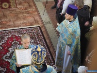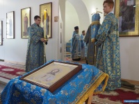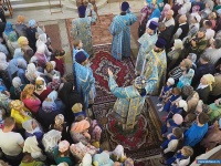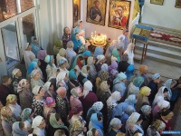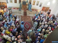 В завершение богослужения был совершён крестный ход, во время которого Владыка окропил верующих святой водой. Во дворе храма воспитанниками детской воскресной школы была организована ярмарка. В этот день всё благоволило престольному празднику - даже тучи разошлись, когда в небо взмыли белые и голубые шары, которые запустили дети из воскресной школы храма, как символ добра и любви. После литургии верующие ещё долго не расходились, поздравляя друг друга с престольным праздником. Люди желали друг другу, чтобы Пресвятая Богородица хранила всех нас и наши семьи от всякого зла.