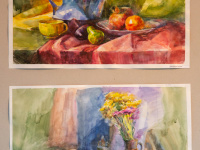Уровень работ старшей группы достаточно высокий, что подтверждают многочисленные победы учеников школы на городских, областных и всероссийских конкурсах. Василий Матвеев и директор школы искусств Татьяна Агапова с гордостью и трепетом вручали своим подопечным грамоты и дипломы победителей. На открытии присутствовал глава Миасского округа Григорий Михайлович Тонких.Кстати, его дочь занимается на в школе № 4, поэтому миасскому мэру близка тема искусства, творчества, и он с большим оптимизмом поделился планами в этой области на ближайший год. Директор управления культуры Жанна Мартенс, в свою очередь, поздравила ребят и преподавателей школы с выставкой, отметив, что ученики отделения - это золотой запас нашего города, и что "вкладывая в наших детей, мы вкладываем в наше будущее". Они вместе вручили преподавателям Художественного отделения грамоты в честь дня города и за вклад в развитие детского творчества. Прекрасную праздничную атмосферу создал замечательный дуэт - Наталья Матвеева (руководитель ансамбля "Ладушки" школы № 20) и её ученица Анастасия Слобода (солистка ансамбля). Выставка продлится до 26 ноября. А уже 29 ноября откроется выставка Алексея Барсукова, выпускника художественного отделения школы искусств № 4, а также выпускником Санкт-Петербургской академии художеств.