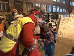 Сегодня, 19 декабря, утром сотрудники миасского отдела ГИБДД вместе с родительским дорожным патрулём и отрядом юных инспекторов школы № 13 отправились поздравлять пешеходов и водителей с наступающим Новым годом. Как рассказала инспектор по пропаганде БДД ведомства Дарья Лунёва, среди участников был и полицейский Дед Мороз, который на время сменил свой жезл на посох и подарки. Дед Мороз в лице государственного инспектора по безопасности дорожного движения Дмитрия Сушкова обратился ко всем участникам дорожного движения и особенно обстоятельно напомнил ПДД ребятам, которые скоро отправятся на зимние каникулы. Страж порядка отметил, что, вместе с прогулками по улицам, играми в снежки и катанием с горок есть и другая сторона зимних прелестей. Это и скользкая дорога, и сугробы, и снегопады - это и многое другое осложняет дорожную обстановку и требует особой внимательности и от водителей, и от пешеходов. "Будьте всегда внимательны на дорогах, переходите проезжую часть только по пешеходному переходу и не катайтесь на горках, которые находятся рядом с автомобильными дорогами. С наступающим Новым годом!", - обращаются к маленьким горожанам сотрудники ОГИБДД.