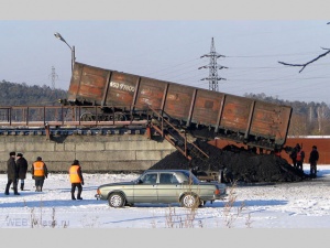 Железнодорожный вагон сошел с рельсов в районе станции Миасс-2. Произошло это при транспортировке к месту разгрузки. Грузовой вагон с углем съехал вниз там, где обрываются рельсы и насыпь, встав под углом почти в 45%. Для Миасса это уже не первый случай. Как сообщалось в миасской прессе, около пяти лет назад в районе станции Миасс-1 вагон, съехавший с рельсов, оказался в огороде одного из местных жителей. И если верить старожилам, в тот огород вагон попадал дважды.
