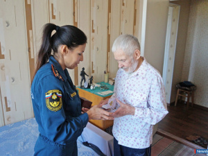 Представители Миасского пожарно-спасательного гарнизона навестили пожилых людей. Пенсионерам вручали памятные медали, дарили цветы и конфеты, а ещё звучали тёплые слова и благодарности за многолетний труд на благо Южного Урала.