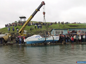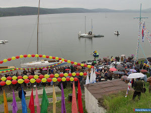 В дождливый день четырнадцатого числа месяца июня 2003 года на воды озера спустили вёсельную лодку "Уралаз", сделанную в Англии для перехода через Атлантический океан.