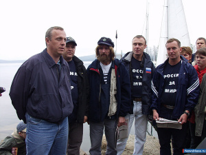 А для начала Конюхов преодолел на вёслах путь до Золотого пляжа, где продолжились торжественные речи, встречи и фотографирования. Александр Мизуров