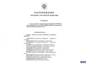 В День медицинского работника президент Владимир Путин подписал распоряжение о поощрении медицинских работников за вклад в борьбу с коронавирусной инфекцией COVID-19, самоотверженность и высокий профессионализм, проявленные при исполнении врачебного долга. Ранее сообщалось, что среди отмеченных почётной грамотой оказался руководитель Городской больницы № 2 Антон Криушов, который был вынужден приступить к подготовке к борьбе с новой инфекцией, едва вступив в должность.
