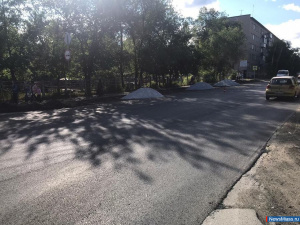 На сегодняшний день капитальный ремонт дорожного полотна ведётся на "гостевом маршруте" по улице Труда. Рабочие уже срезали старое асфальтовое покрытие, спецтехника выровняла почву, завезён и равномерно распределён по всей поверхности дороги щебень. Подрядчик приступил к укладке нового асфальта.