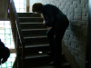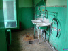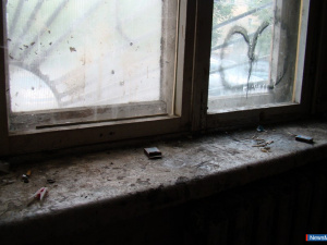 Туалеты, умывальники и душевые представляли собой душераздирающее зрелище: бегущая вода, обваливающаяся со стен штукатурка, текущие трубы, сооружённые из досок перегородки между кабинками туалетов… И в этих условиях вынуждены жить люди! По пути на пятый этаж в лестнице обнаружилась дырка, а хозяин одной из комнат показал отсыревший потолок, куда сквозь крышу попадает вода.