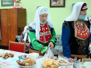 В конце минувшей недели в Доме народного творчества состоялось праздничное мероприятие, приуроченное ко Дню пожилого человека. Члены клуба "Ак инэйзэр" встретились, чтобы спеть песни на родном языке и пообщаться за чашкой чая. Многим миасцам знакомы участницы клуба "Ак инэйзэр" (в переводе - "Мудрые женщины"): женщины преклонного возраста в разноцветных народных костюмах и с энергией молодёжи часто принимают участие в городских праздниках, посещают мероприятия для детей с особенностями здоровья или оставшихся без попечения родителей, знакомят школьников с татарской и башкирской культурой. В День пожилого человека они также собрались в нарядных одеждах, чтобы подарить друг другу песни и стихи на родном языке. Правда, традиционный костюм пришлось дополнить современным элементом - защитной медицинской маской. Почётным гостем стал имам мухтасиб Миасского округа Ахмад хазрат Хасанянов. Он произнёс речь на двух языках и поздравил собравшихся с праздником. Мероприятие завершилось душевным чаепитием с пением муджанатов.