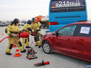 В рамках регионального проекта "Безопасность дорожного движения в Челябинской области", на автомобильной дороге М-5 "Урал" состоялись межведомственные учения по ликвидации последствий крупного дорожно-транспортного происшествия. Вместе с огнеборцами участие в тренировки приняли сотрудники миасского поисково-спасательного отряда. Специалисты отработали шесть возможных сценариев развития событий. По легенде, в результате опасных метеорологических явлений на трассе произошло массовое столкновение легковых и грузовых автомобилей, автобуса и бензовоза. Сообщение о случившемся поступило в ЕДДС, к месту происшествия направились оперативные службы. В результате ДТП произошло возгорание в моторном отсеке легкового автомобиля, повреждена цистерна бензовоза, пострадали около 50 человек, есть погибшие, происходит розлив перевозимого топлива Первыми на место прибыли сотрудники МЧС, ГИБДД, скорой помощи. Часть пассажиров эвакуировали в пункт обогрева, развёрнутый рядом. Остальных, кому требовалась помощь медиков, на носилках доставили к каретам для дальнейшей транспортировки в лечебные учреждения. Одновременно с этим пожарные провели боевое развёртывание и приступили к тушению автомобиля. Для предотвращения возгорания разлитого из бензовоза топлива была создана пенная подушка. Позже, когда прибыли спасатели, пробоину в цистерне устранили. Из-за ДТП и ликвидации его последствий в течение нескольких часов на дороге образовался затор. На трассе был развёрнут мобильный городок жизнеобеспечения. Сотрудники МЧС России совершили обход автомобилей, застрявших в пробке, для оказания адресной помощи. Привлекаются дополнительные силы РСЧС, в том числе для буксировки техники и перекачки нефтепродуктов. Затем поступила информация, что группа детей, следовавшая на автобусе из Орска в Омск, длительное время не выходит на связь. Специалисты чрезвычайного ведомства провели ряд необходимых мероприятий и обнаружили транспортное средство в заторе. Маленьких пассажиров эвакуировали в пункт обогрева. Чуть позже от группы патрулирования поступил сигнал, что у легкового автомобиля, застрявшего в пробке, закончился бензин. Сотрудники поисково-спасательного отряда на квадроцикле эвакуировали пассажира, водителя обеспечили топливом. На всех этапах учений за действиями специалистов следили заместитель Министра общественной безопасности Челябинской области Валерий Устинов, начальник управления организации пожаротушения и проведения аварийно-спасательных работ главного управления МЧС по Челябинской области Михаил Теплых, представители экстренных служб. На подведении итогов были озвучены моменты, которые требуют дополнительной проработки. Руководители служб и ведомств внесли свои предложения по улучшению взаимодействия. В целом, сотрудники всех ведомств и организаций, участвовавшие в мероприятии, получили положительную оценку. Всего в учениях принимали участие 101 человек личного состава и 42 единицы техники.