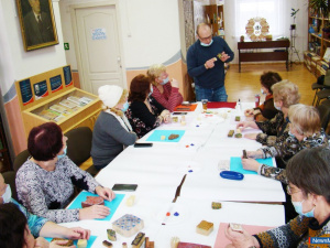 Миасский Дом народного творчества запустил новый проект: сотрудники ДНТ будут проводить мастер-классы по различным видам и техникам декоративно-прикладного творчества для членов совета ветеранов машгородка. Первое такое занятие уже состоялась в конце минувшей недели. Площадкой для проведения мастер-классов стала библиотека имени Ю.Н. Либединского. Здесь прошёл мастер-класс по набойке на ткани. Об истории появления этого вида искусства, технологии ведения работы и используемых материалах рассказал участницам мастер-класса руководитель клуба исторической реконструкции "Ратный век" Александр Овсянников. Гости с большим интересом слушали теоретическую часть, рассматривали предложенные узоры, выбирали подходящие цвета и осваивали новый для себя вид творчества. Некоторые из них тотчас применили полученные знания на практике, украсив набойкой не только предложенный лоскут, но и тканевые защитные маски. В завершение мастер-класса участницы сделали коллективное фото с готовыми изделиями, чтобы поделиться впечатлениями с друзьями и близкими. Впереди у членов совета ветеранов машгородка ещё много интересных занятий. Остальные же жители города, заинтересовавшиеся декоративно-прикладным творчеством, могут следить за расписанием мастер-классов в разделе "Афиша" на сайте Miass.ru и в группе Дома народного творчества в социальной сети "ВКонтакте". Также возможна организация дополнительных мастер-классов по групповым заявкам.