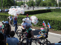 В субботу, 29 мая, в Миассе на центральной площади перед городской администрацией состоялся первый в истории города велопарад. Мероприятие в Миассе стало частью всероссийской акции, которая прошла одновременно в разных городах страны. Организатором мероприятия в нашем городе выступил благотворительный фонд "Сердце Урала". Для участия в миасском велопараде зарегистрировались более тысячи человек из Миасса, Челябинска и Чебаркуля. Самому юному участнику миасского велопарада было всего лишь 3 года, а самому возрастному - 81 год! Среди участников были и почётные гости - заместитель губернатора Челябинской области Анатолий Векшин, министр по физической культуре и спорту Максим Соколов, глава Златоуста Максим Пекарский с чемпионской командой женского ватерпольного клуба "Динамо-Уралочка". Команды выступали в единой форме с флагами предприятий и организаций. Велосипедисты двигались несколькими колоннами по центральному проспекту города - от улицы Орловской до улицы Лихачёва - с общей скоростью около 15 км/ч. Колонны преодолевали два круга, после чего возвращались к сцене около администрации. Награждение участников проходило в шести номинациях: самый оригинальный велосипед, леди на велосипеде, самый возрастной участник, семейный тандем, самый оригинальный участник, велоколлектив города. Самым инициативным и креативным организаторы вручили подарки и призы. Самые яркие моменты праздника - на снимках Александра Мизурова.