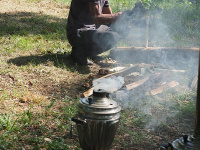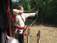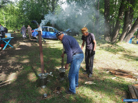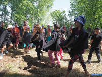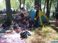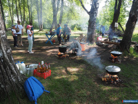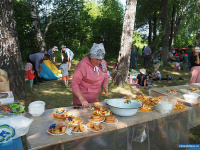Нынешний праздник, как и предыдущий, прошёл в живописном и очень уютном месте - за старой школой, возле реки. Жители села Смородинка заранее разожгли костры, чтобы сварить на них традиционную кашу и нагреть воду в самоварах. Организацию культурной части мероприятия в этом году взял на себя миасский Дом народного творчества, сотрудники которого практически в полном составе прибыли на поляну, чтобы подарить гостям настоящий праздник. Главную роль в этом традиционном мероприятии сыграли, конечно, неутомимые активистки из клуба "Ак инэйзэр" ("Мудрые женщины") ДНТ и их руководитель Булякай Шафикова. Мастерицы читали стихи и пели народные песни, активно поддерживали приезжих артистов, задорно отплясывая под национальные мелодии. По приглашению организаторов в концертной программе приняли участие вокально-инструментальный ансамбль "Дуслык" села Долгодеревенского (художественный руководитель Радик Загиров), ансамбль "Дулкын" ДК "Бригантина" (руководитель Рамиль Хафизов), солисты Лилия Ягудина и Алексей Шишконов из СДК села Смородинка. Булякай Галеевна напомнила зрителям легенду о том, как появился этот праздник. В давние времена, узнав и готовящемся нападении, люди послали молодую мать в соседнее селение за подмогой. Утомлённая дорогой женщина чувствовала, что не успеет вовремя добраться с ребёнком, и оставила малыша на дереве, горюя, что больше не увидит его живым. Приведя подмогу и успешно защитив селение, мать вместе с другими жителями вернулась за телом ребёнка. Каково же было её удивление, когда младенец оказался цел и невредим: оказалось, о нём позаботились вороны. Благодарные жители угостили птиц кашей. Так и родилась традиция отмечать Карга боткасы - Праздник вороньей каши. Кстати, любознательные жители могли взглянуть, как могли выглядеть герои легенды: костюмы кочевников IX и XIX века можно было увидеть на руководителе клуба исторической реконструкции "Ратный век" ДНТ Александре Овсянникове и госте из Челябинска, руководителе клуба "Кырыс Уксы" ("Суровые лучники") Тагире Абдрафикове. Под их чутким руководством все желающие смогли пострелять из настоящего лука. Лучный тир пользовался успехом и у детей, и у взрослых. Также неизменный интерес вызывали предметы облачения воинов, привезённые миасскими реконструкторами. Юным гостям разрешали примерить настоящую кольчугу и шлем, подержать меч и щит и сделать в боевом облачении фото на память.